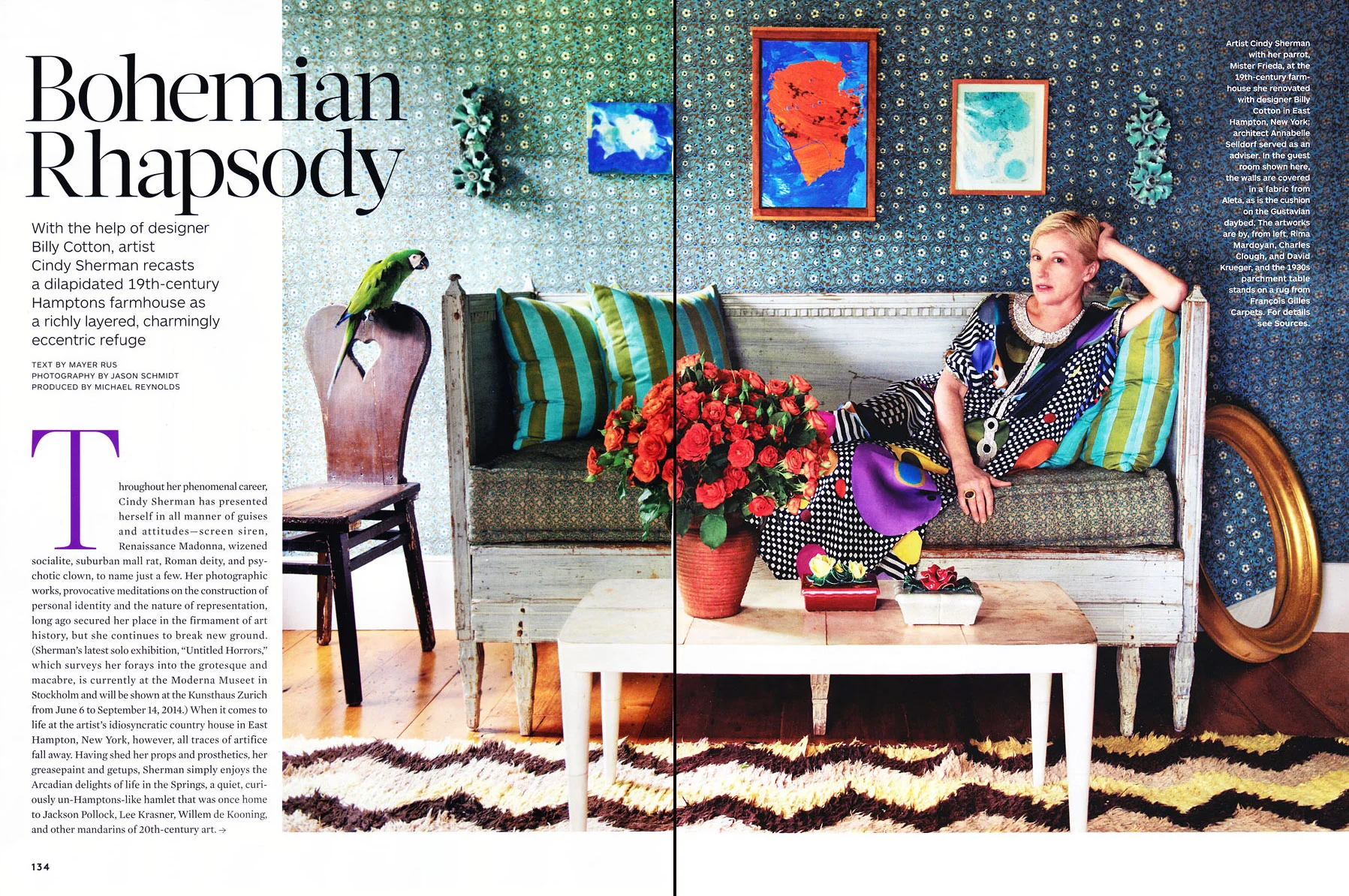 - Architectural Digest, "Bohemian Rhapsody" Cindy Shermans Estate. December 2012